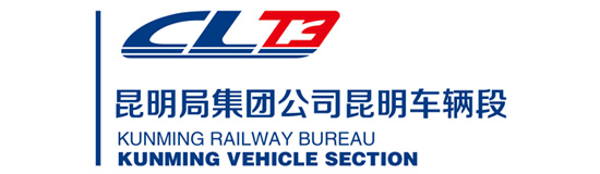 昆明車輛段以藍(lán)色為主色調(diào),紅色為輔助色。用動車造型作為標(biāo)志的整體結(jié)構(gòu),大寫